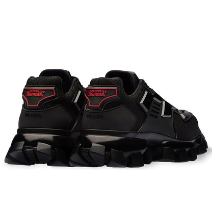 Welcome to the future. The world is run by robots and humans wear these black Cloudbust Thunder sneakers from Prada. Cool, huh? Featuring an almond toe, a lace-up front fastening, a branded insole, a logo plaque to the tongue, a contrast red rubberised logo to the heel and a ridged rubber sole.